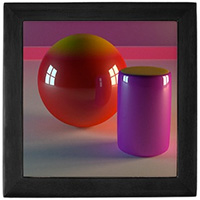 • 12. Cylinder and Ball, 2009, 5.5" x 5.5" x 2.25", Pixel Dust on ceramic tile and a lacquer box. | |